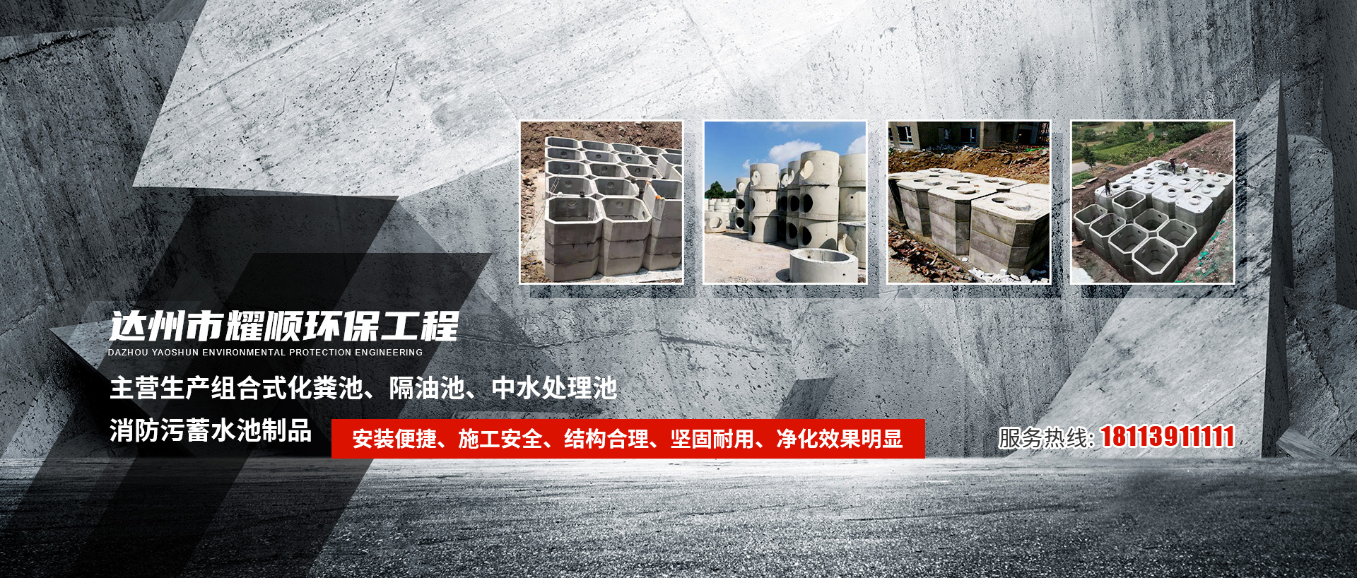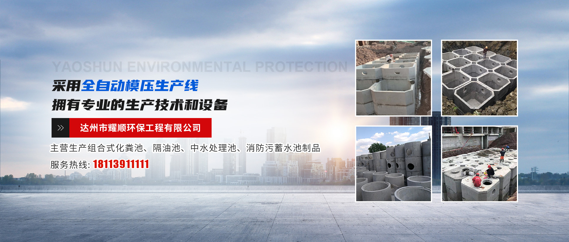 達(dá)州市耀順環(huán)保工程有限公司位于四川東北部、達(dá)州市中部通川區(qū)。本公司采用全自動模壓生產(chǎn)線,擁有專業(yè)的生產(chǎn)技術(shù)和設(shè)備,同時擁有一支專業(yè)的施工隊伍。本公司堅持質(zhì)量第一、互惠發(fā)展,讓您的居住環(huán)境更美、更舒適,是我們工人的宗旨。本公司愿與廣大建筑同仁一道,為美化城市作出貢獻(xiàn)。我公司現(xiàn)生產(chǎn)組合式化糞池、隔油池、中水處理池、消防污蓄水池制品。我們的產(chǎn)品在建筑工程中不斷接受檢驗,具有安裝便捷、施工安全、用時短、結(jié)構(gòu)合理、堅固耐用、抗?jié)B性能好、凈化效果明顯、經(jīng)濟(jì)合理的優(yōu)特點。...